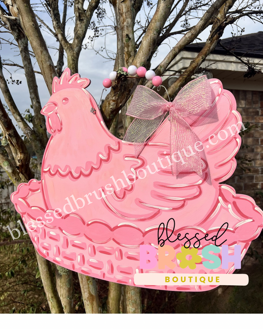 Vintage “Hen on a Nest” Inspired Door Hanger | Hand-Painted